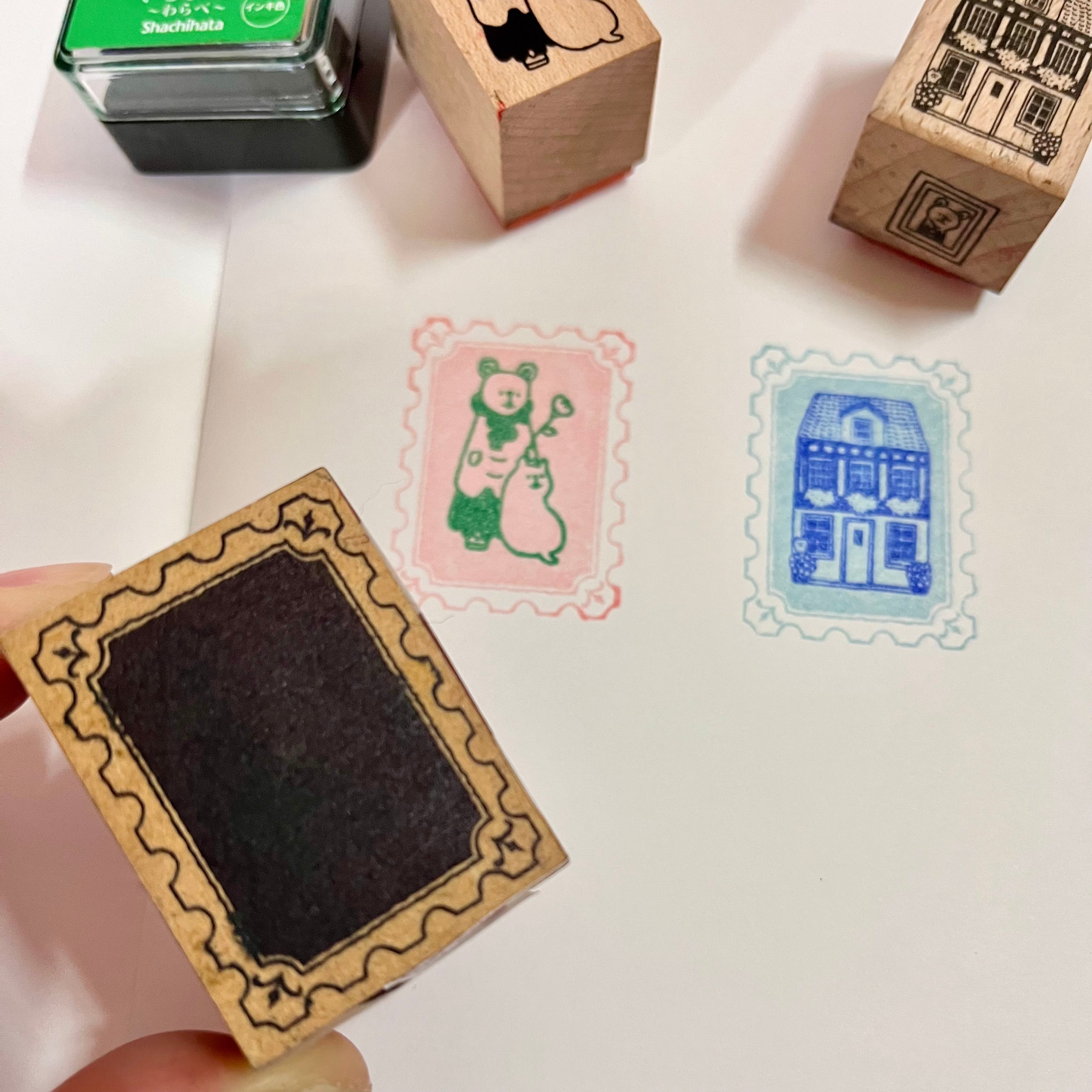 切手みたいな、額みたいな可愛いフレームはんこで色を楽しんでみませんか。