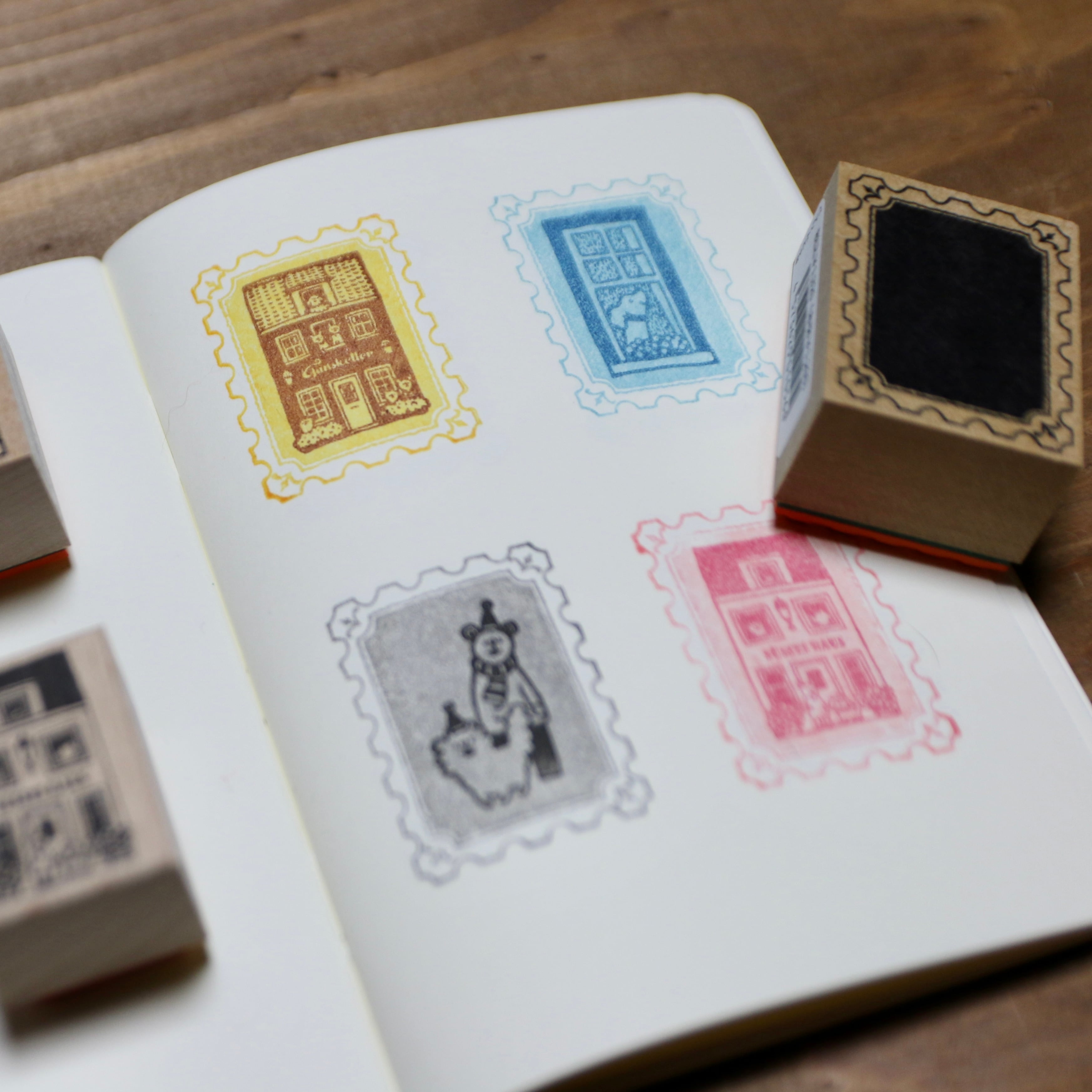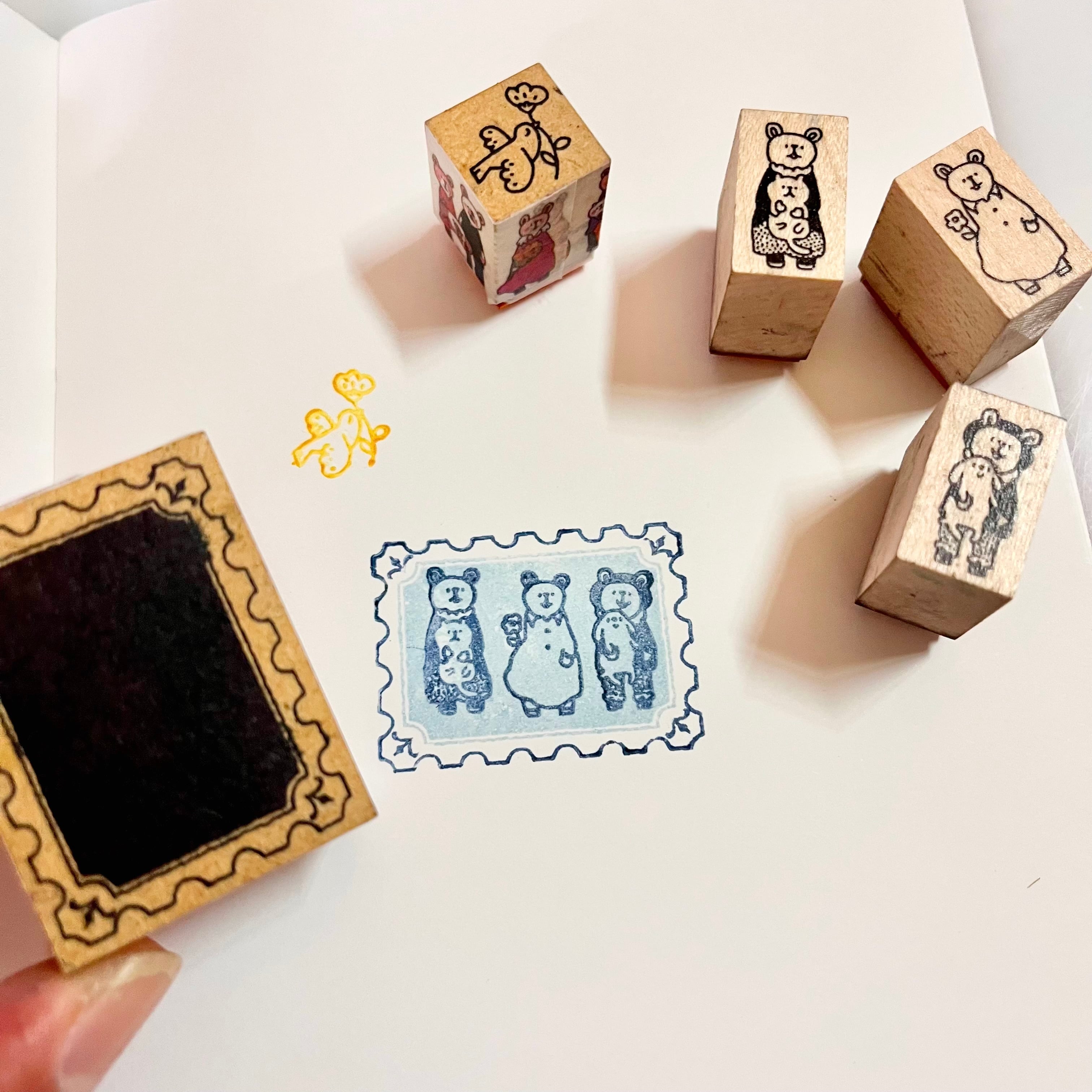 切手のような細いフレームと中面のベタ部分の組み合わせで楽しいはんこ遊びができます。