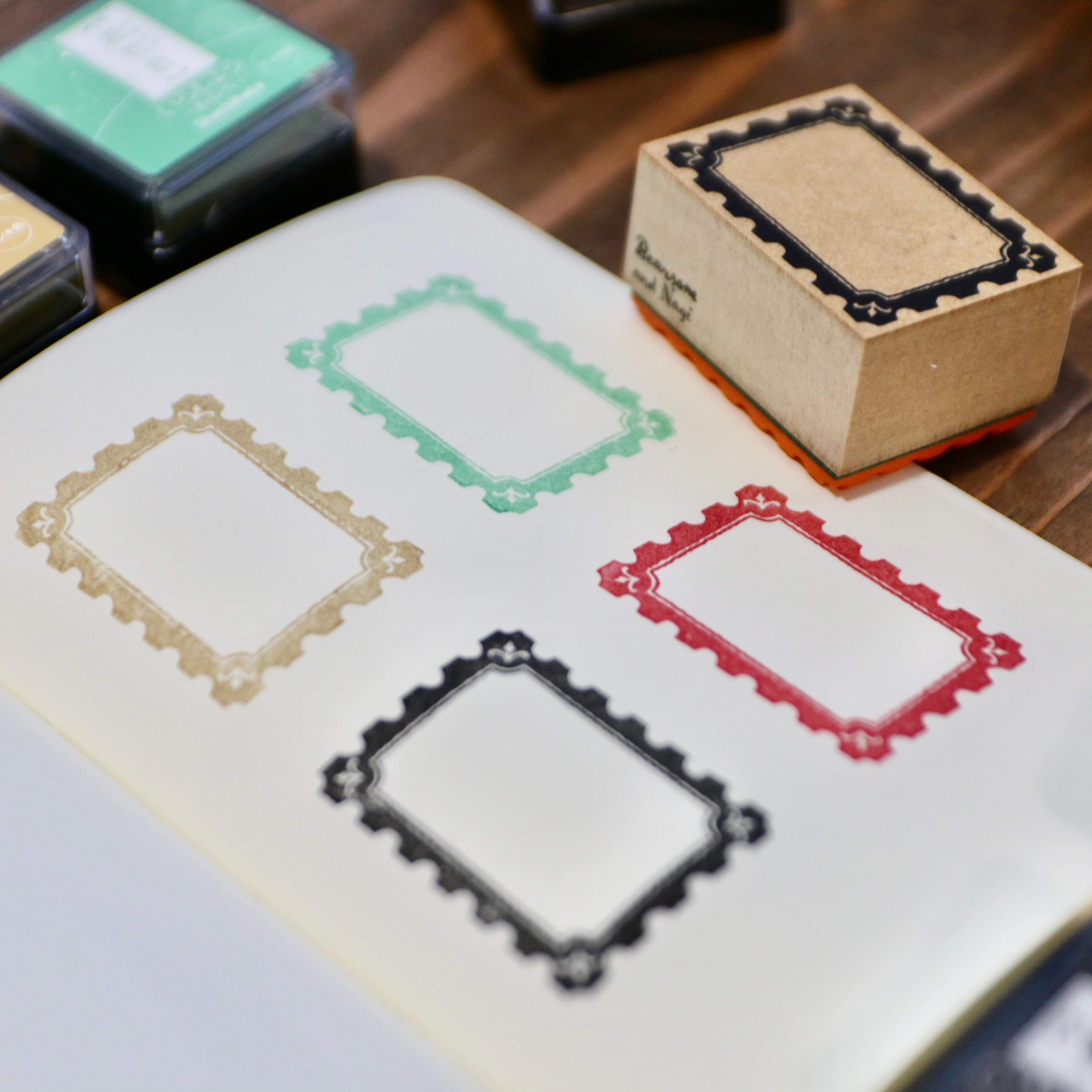 切手みたいな、額みたいな可愛いフレームはんこで楽しんでみませんか。