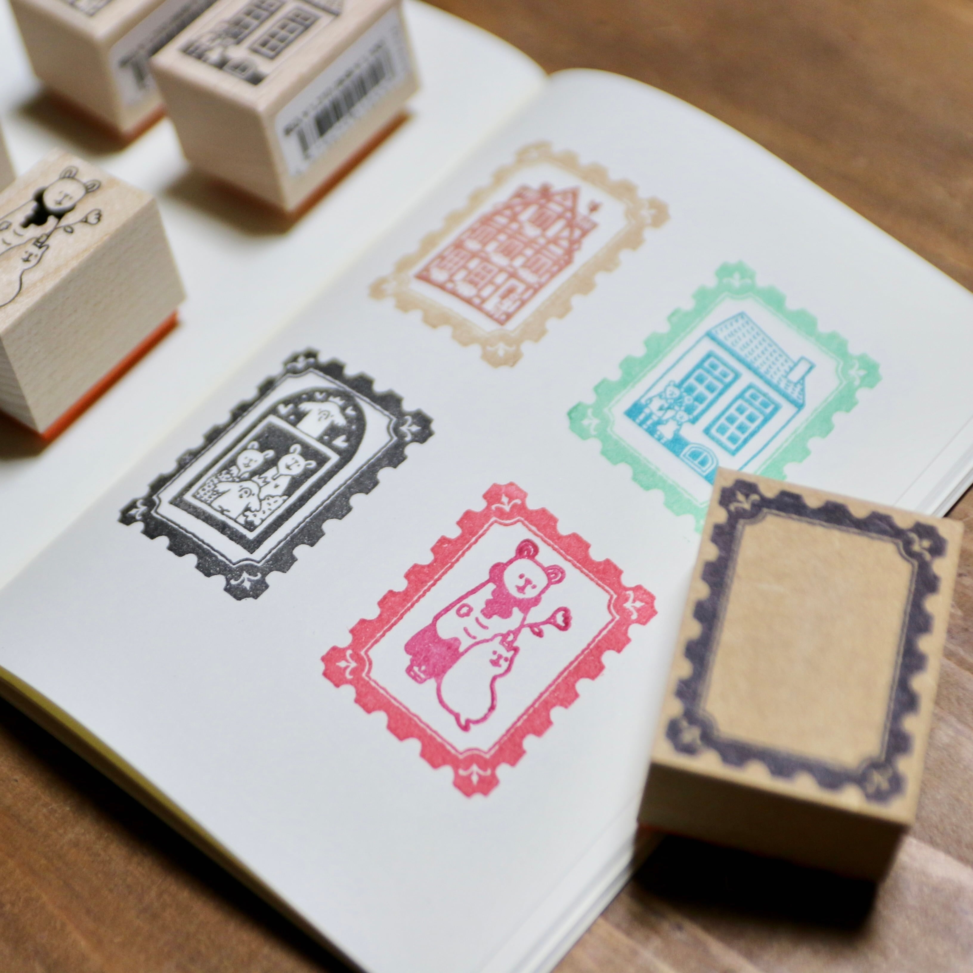 「可愛いフレームはんこ」は、切手のような額みたいな愛らしいフレームはんこです。
