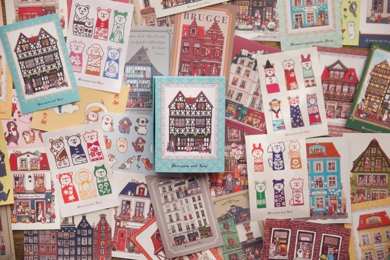 トリスヨシコが描くクマや犬、猫が住むメルヘンな世界のイラストが楽しめるメモ紙。