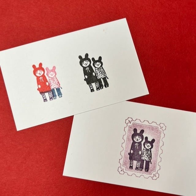 うさぎの耳付きパーカーを着てるクマ姉妹。
