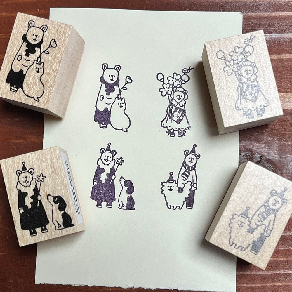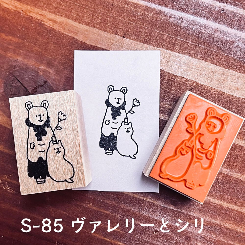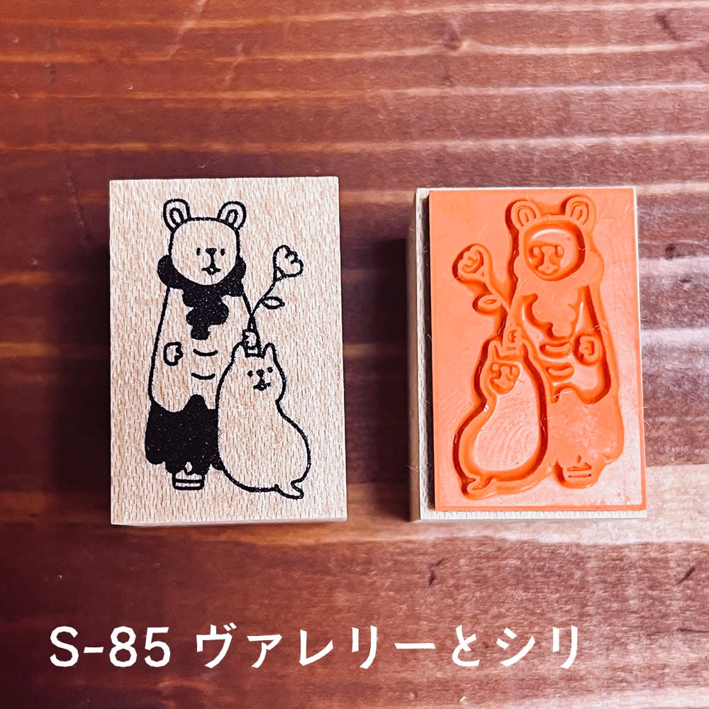 ❥S-85 ヴァレリーとシリ(穏やかな顔のクマのヴァレリーと尻尾の短いちょっとぽっしゃりな猫のシリ。)