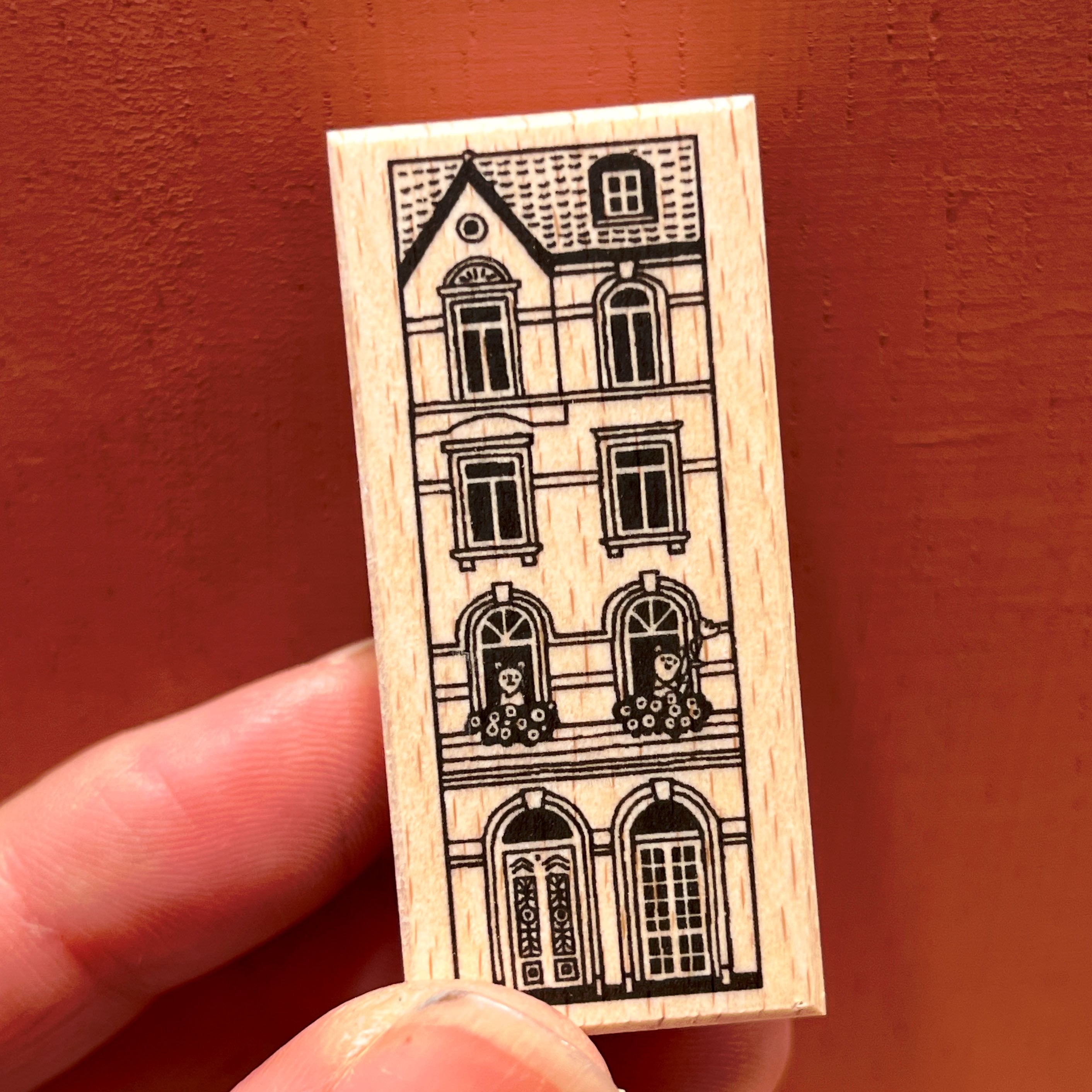 ドアの細かい装飾もはんこで表現されており、とっても素敵なお家です