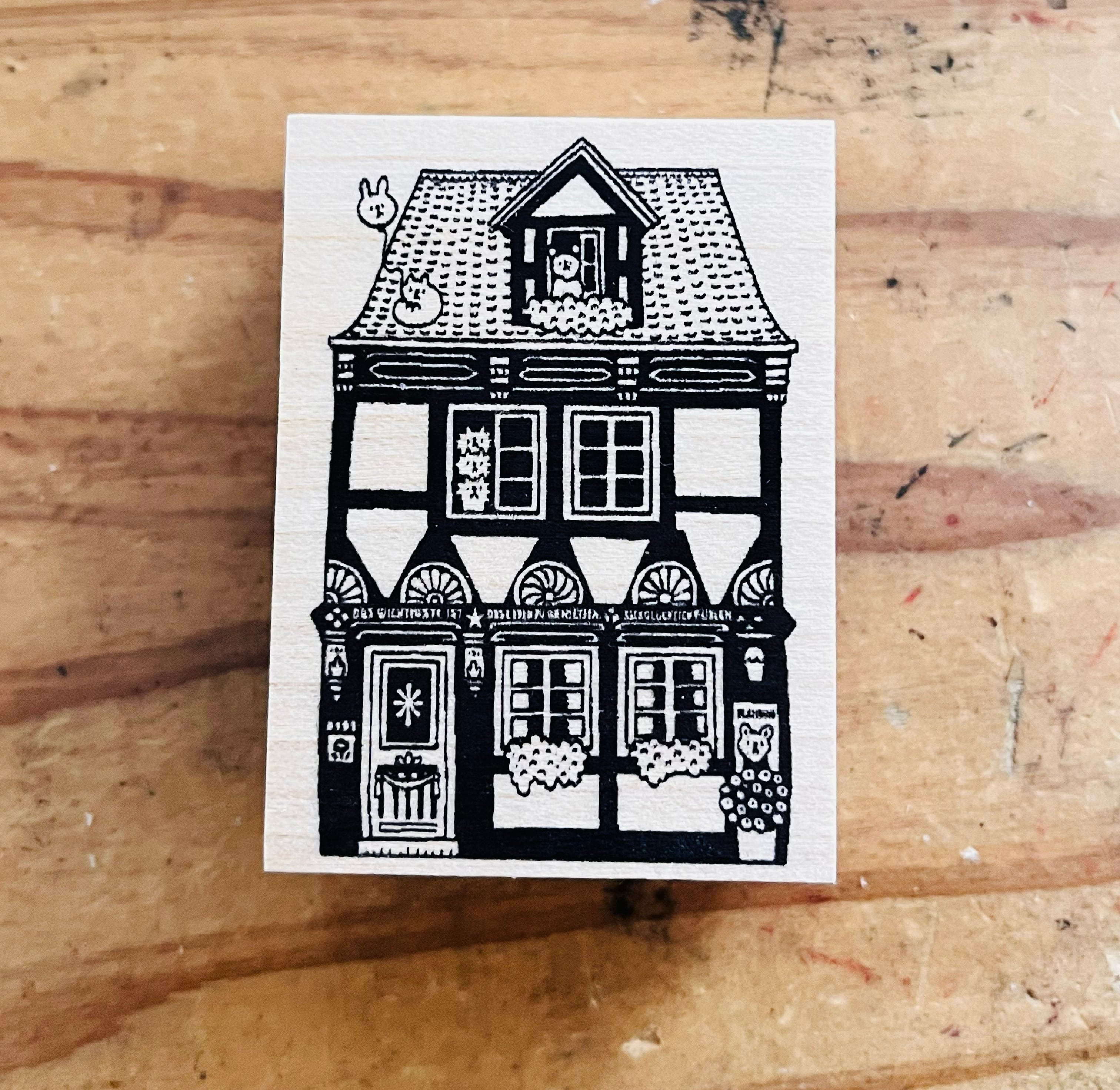 ドイツの伝統的なデザインを取り入れた、美しい木組みの装飾が魅力的なお家のはんこです。